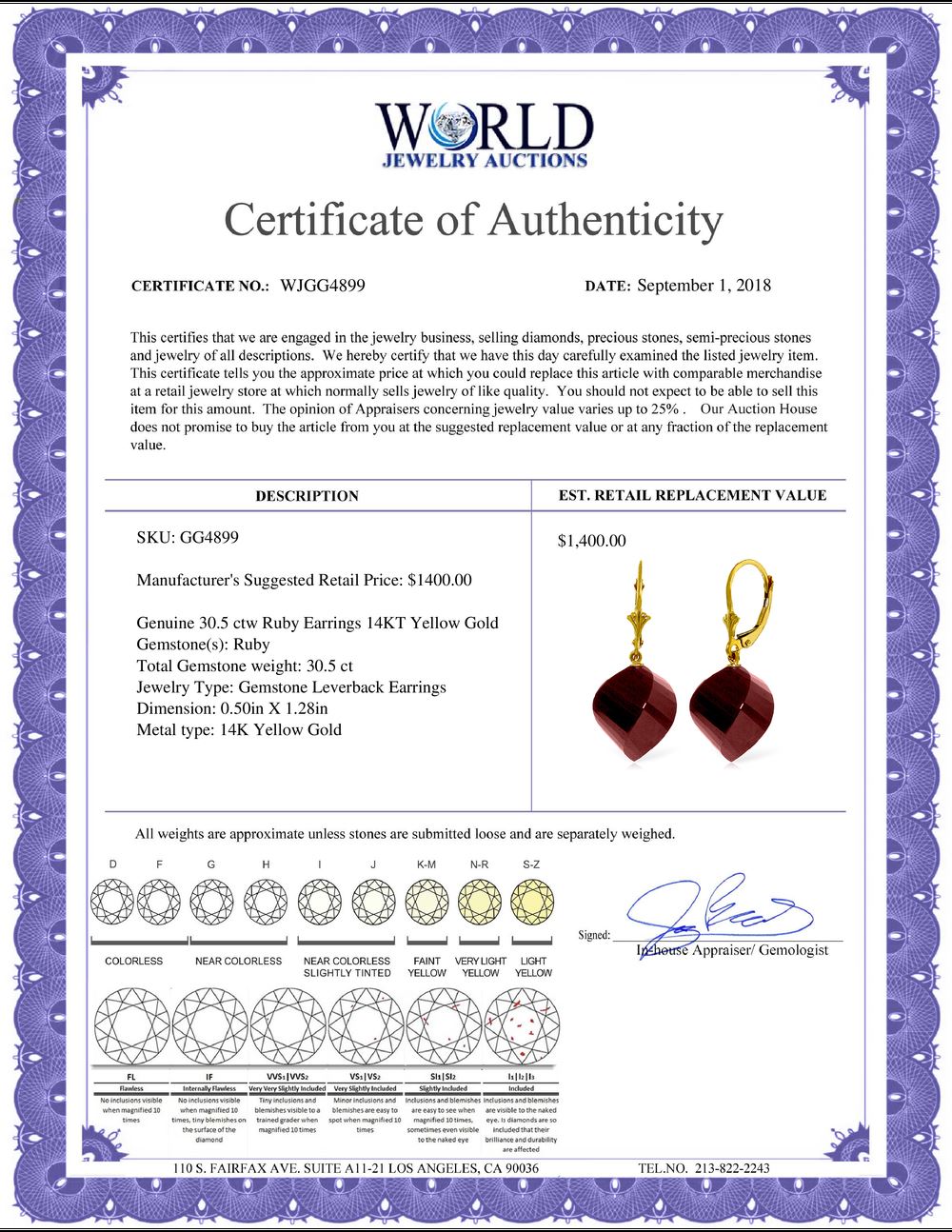 REF-44T4A - SKU: GG4899 ---- Genuine 30.5 ctw Ruby Earrings 14KT Yellow Gold
