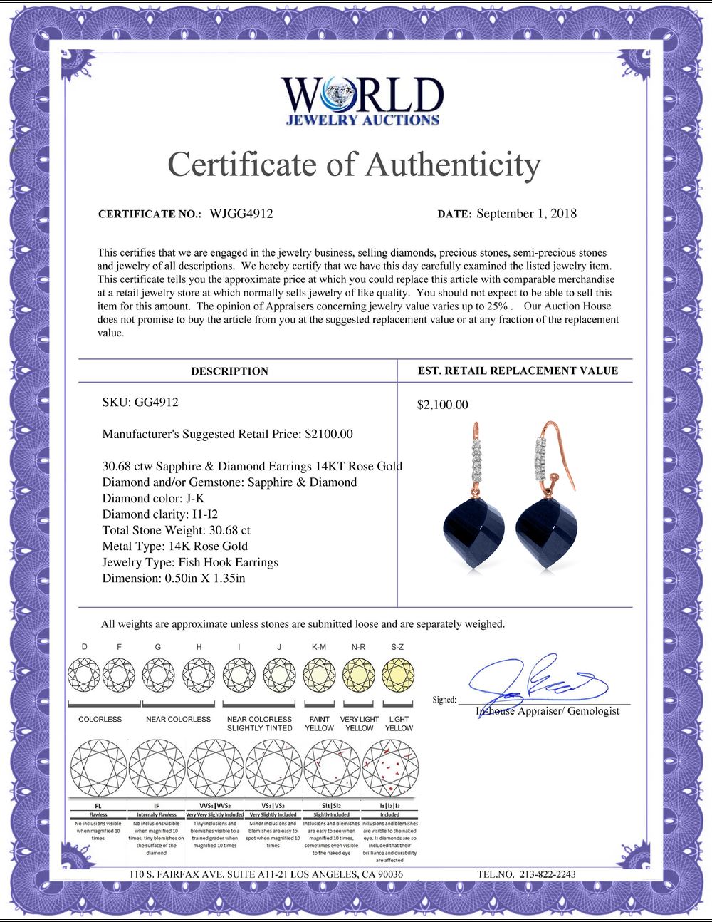 REF-67P3H - SKU: GG4912 ---- Genuine 30.68 ctw Sapphire & Diamond Earrings 14KT Rose Gold