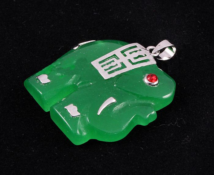 Genuine 30.85ctw Elephant Jade Pendant **|**|** Good Fortune 18KGP (Gold Plated) Silver Elephant Green Jade Pendant measuring 24.18x23.46mm ; MSRP: $300