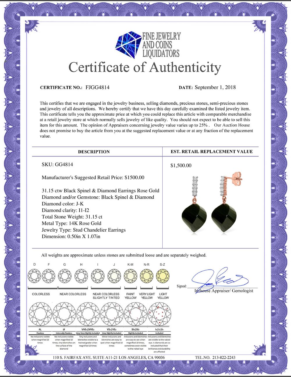 REF-48P9H - SKU: GG4814 ---- Genuine 31.15 ctw Black Spinel & Diamond Earrings 14KT Rose Gold