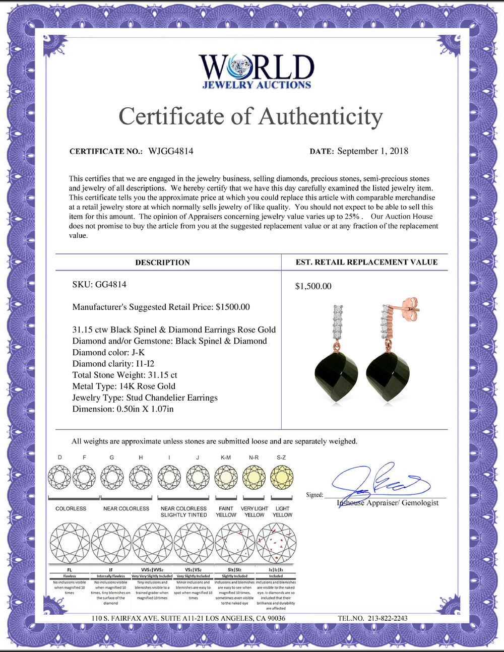 REF-48P9H - SKU: GG4814 ---- Genuine 31.15 ctw Black Spinel & Diamond Earrings 14KT Rose Gold