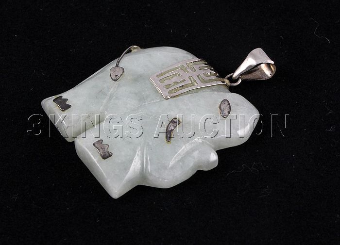 Genuine 31.57ctw Elephant LightGreen JadePendant **|**|** Good Fortune Sterling Silver Elephant Light Green Pendant measuring 24.18x23.46mm ; MSRP: $300