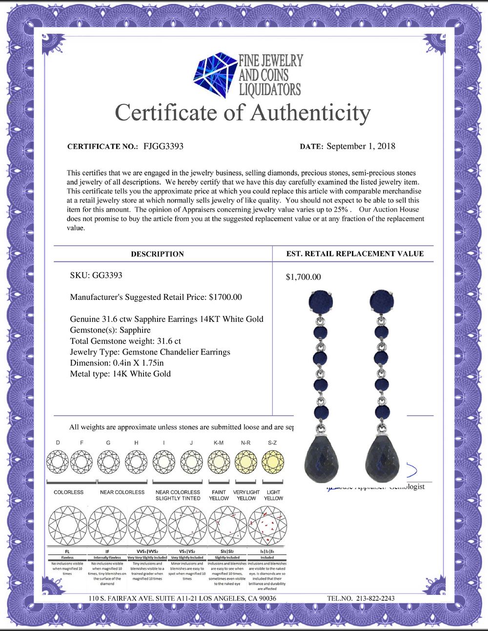 REF-55M2T - SKU: GG3393 ---- Genuine 31.6 ctw Sapphire Earrings 14KT White Gold