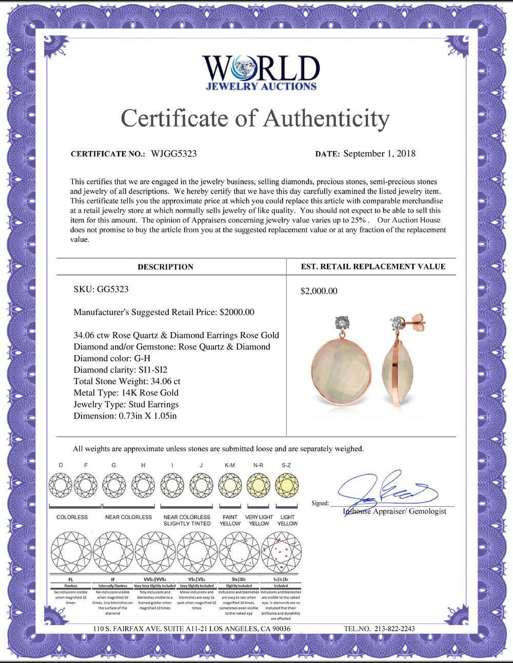 REF-65N3R - SKU: GG5323 ---- Genuine 34.06 ctw Rose Quartz & Diamond Earrings 14KT Rose Gold