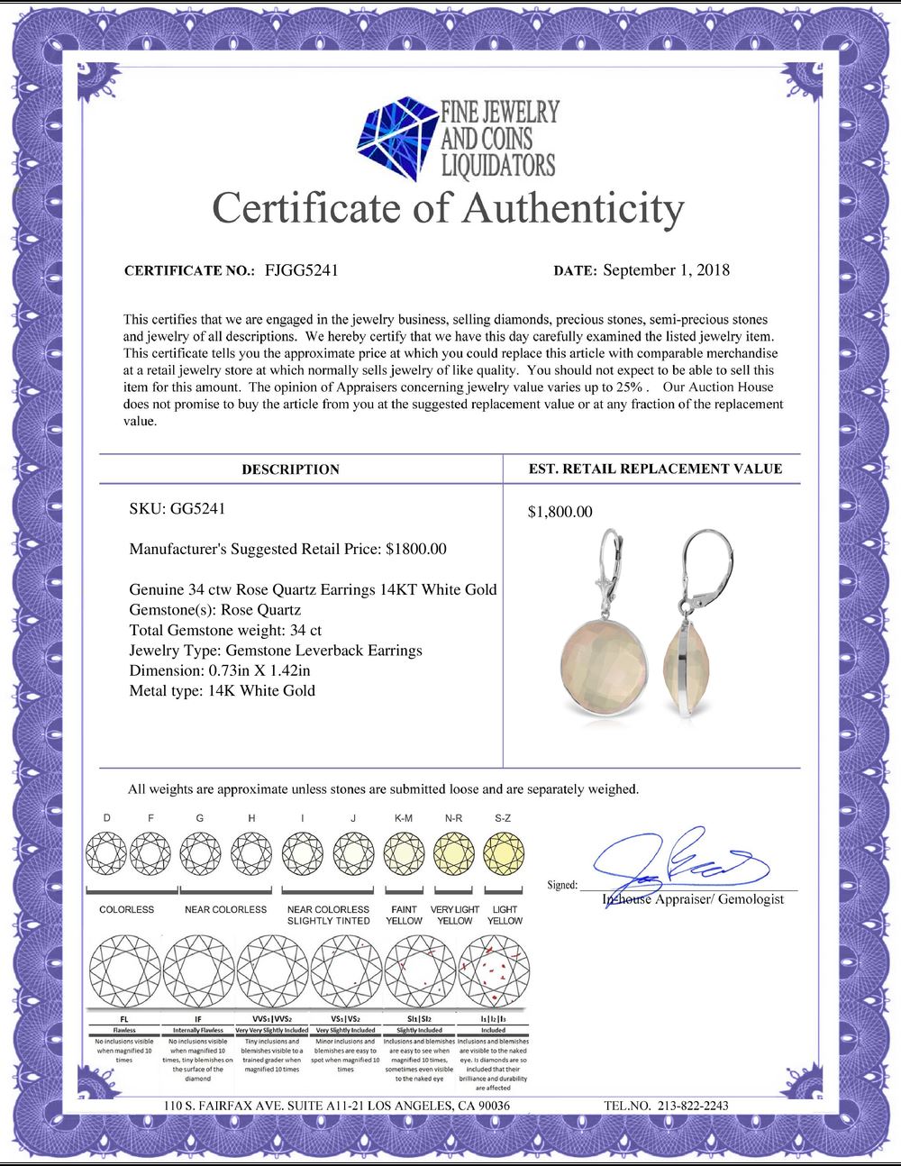 REF-58Z2N - SKU: GG5241 ---- Genuine 34 ctw Rose Quartz Earrings 14KT White Gold