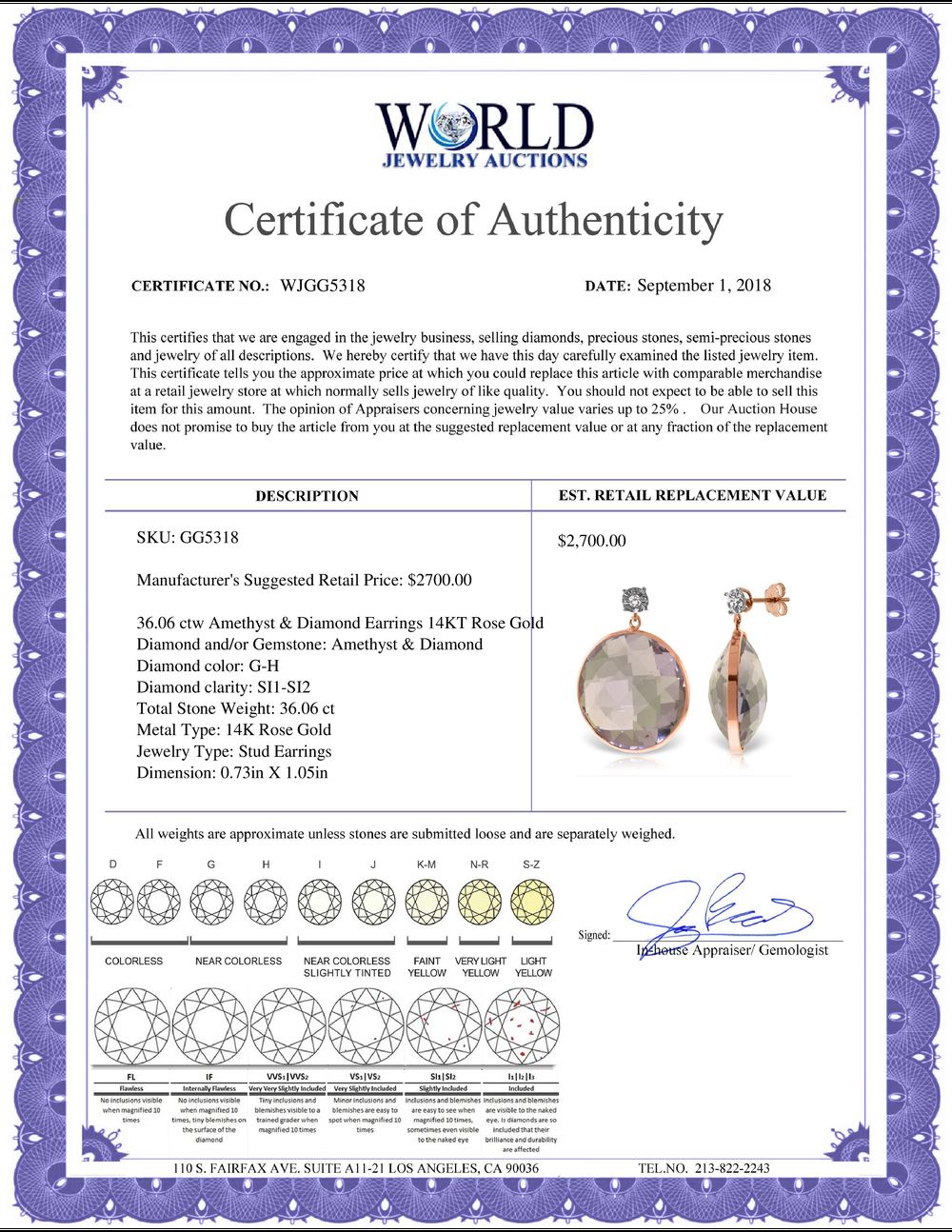 REF-87R5P - SKU: GG5318 ---- Genuine 36.06 ctw Amethyst & Diamond Earrings 14KT Rose Gold