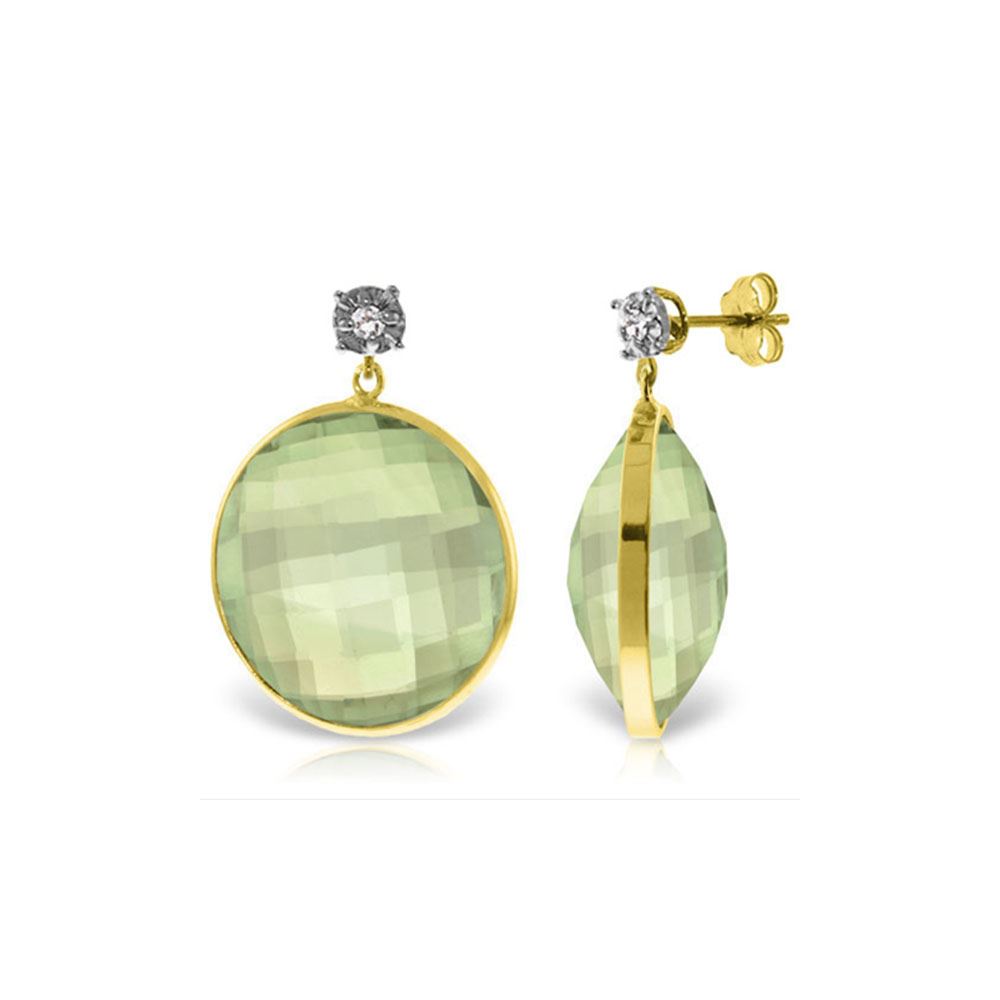 Genuine 14K Yellow Gold 36.06 ctw Green Amethyst & Diamond Earrings
