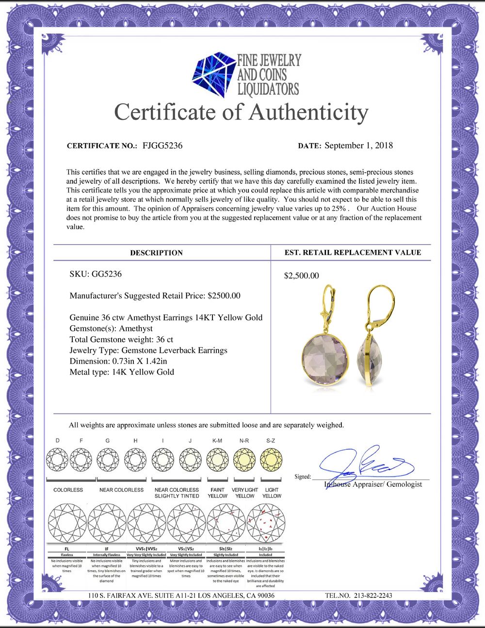REF-80X4M - SKU: GG5236 ---- Genuine 36 ctw Amethyst Earrings 14KT Yellow Gold