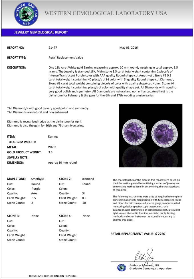 total approx. 3.5 grams. The Jewelry is stamped 18k, Main stone 3.5 carat total weight containing 2 piece/s of Intense Translucent Purple color with