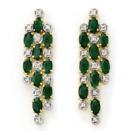 Genuine 4.03 ctw Emerald & Diamond Earrings Yellow Gold -2764B4EME-Y