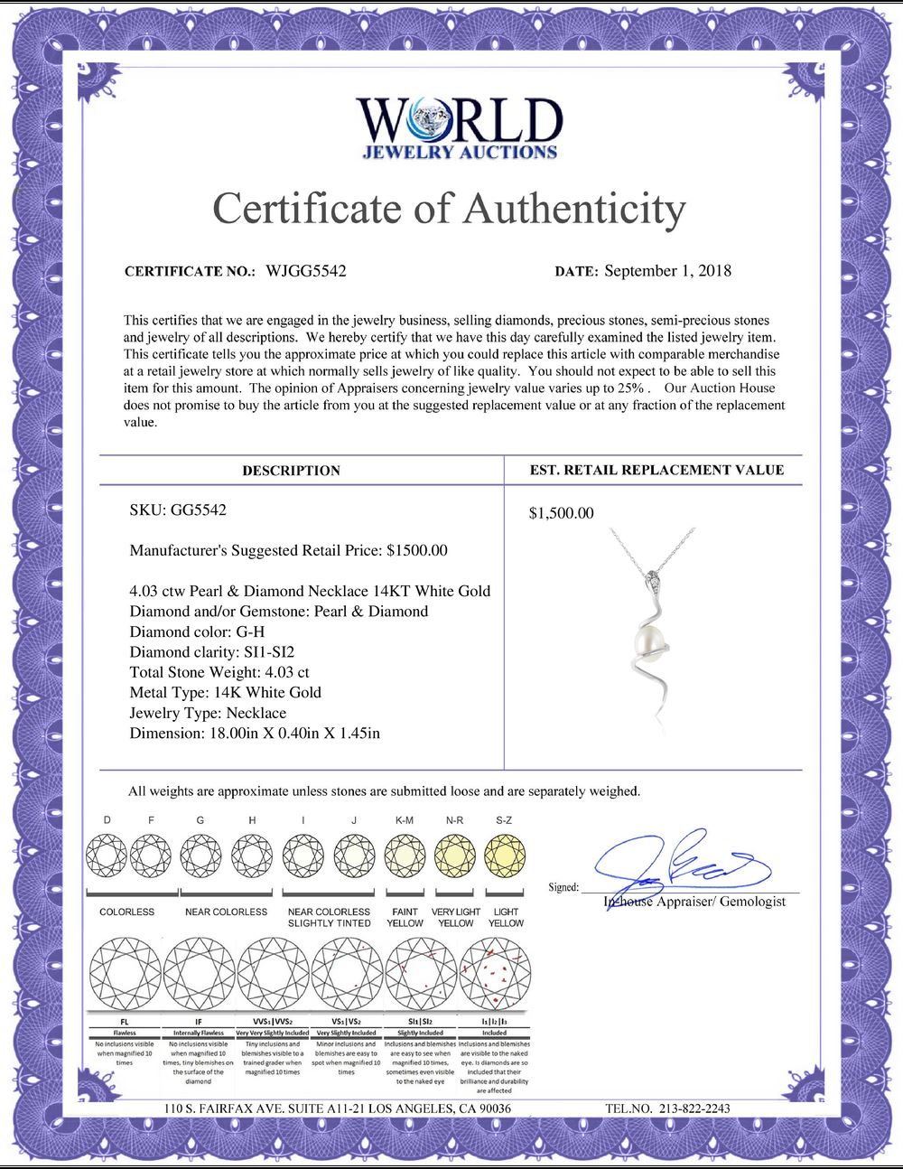 REF-47W2Y - SKU: GG5542 ---- Genuine 4.03 ctw Pearl & Diamond Necklace 14KT Rose Gold