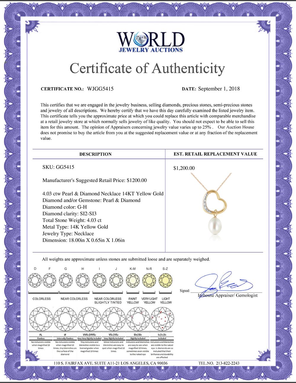 REF-39X2M - SKU: GG5415 ---- Genuine 4.03 ctw Pearl & Diamond Necklace 14KT Yellow Gold