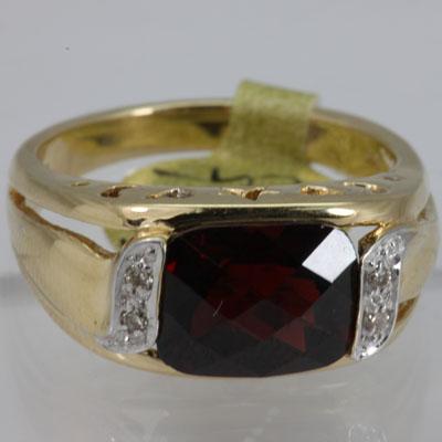 Main Stone: Garnet ; Carat Weight: 4.04ctw ; Gold Carat:14KT; Metal: Yellow Gold ; Ring Size: 7 ; Diamond Weight: 0.05 ; Gemstone Carat Weight: 3.99; Cut: GARNET