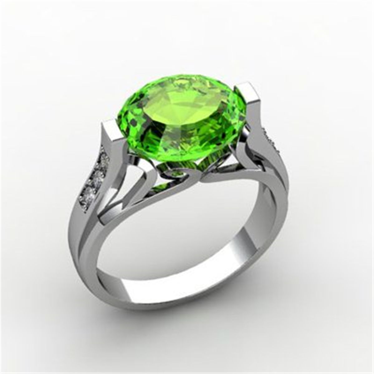 Total CTW: 4.09 ; Mainstone: Peridot ; Metal Purity: 10kt ; Metal: White or Yellow Gold 6.2 ; Diamond Count 1: 6 Round Cut ; Diamond CTW 1: 0.09 ; Diamond Clarity: SI-I ; Diamond Color: G-H ; Gem Count 1: 1 Oval Cut ; Color: Light Green ; Clarity/Rating: AA-AAA ; MSRP: $1358