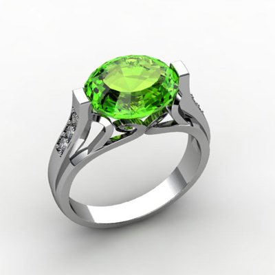 Total CTW: 4.09 ; Mainstone: Peridot ; Metal Purity: 14Kkt ; Metal: White or Yellow Gold 6.2 ; Diamond Count 1: 6 Round Cut ; Diamond CTW 1: 0.09 ; Diamond Clarity: SI-I ; Diamond Color: G-H ; Gem Count 1: 1 Oval Cut ; Color: Light Green ; Clarity/Rating: AA-AAA ; MSRP: $1499