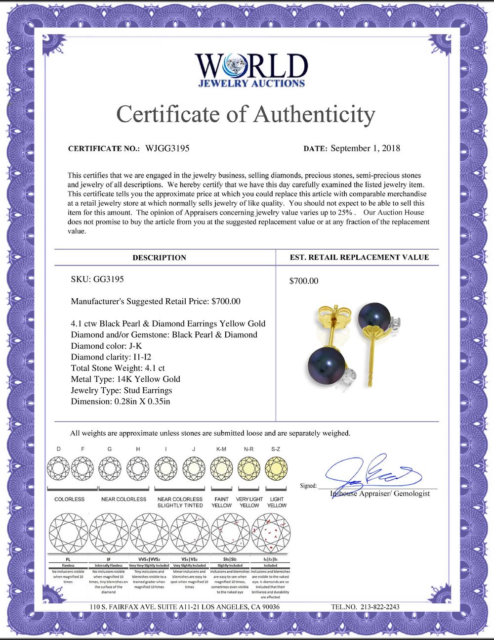 SKU: GG3195 ---- Genuine 4.1 ctw Black Pearl & Diamond Earrings 14KT White Gold