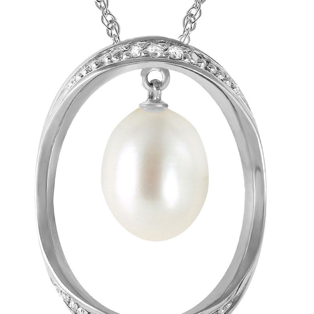 Genuine 14K White Gold 4.1 ctw Pearl & Diamond Necklace