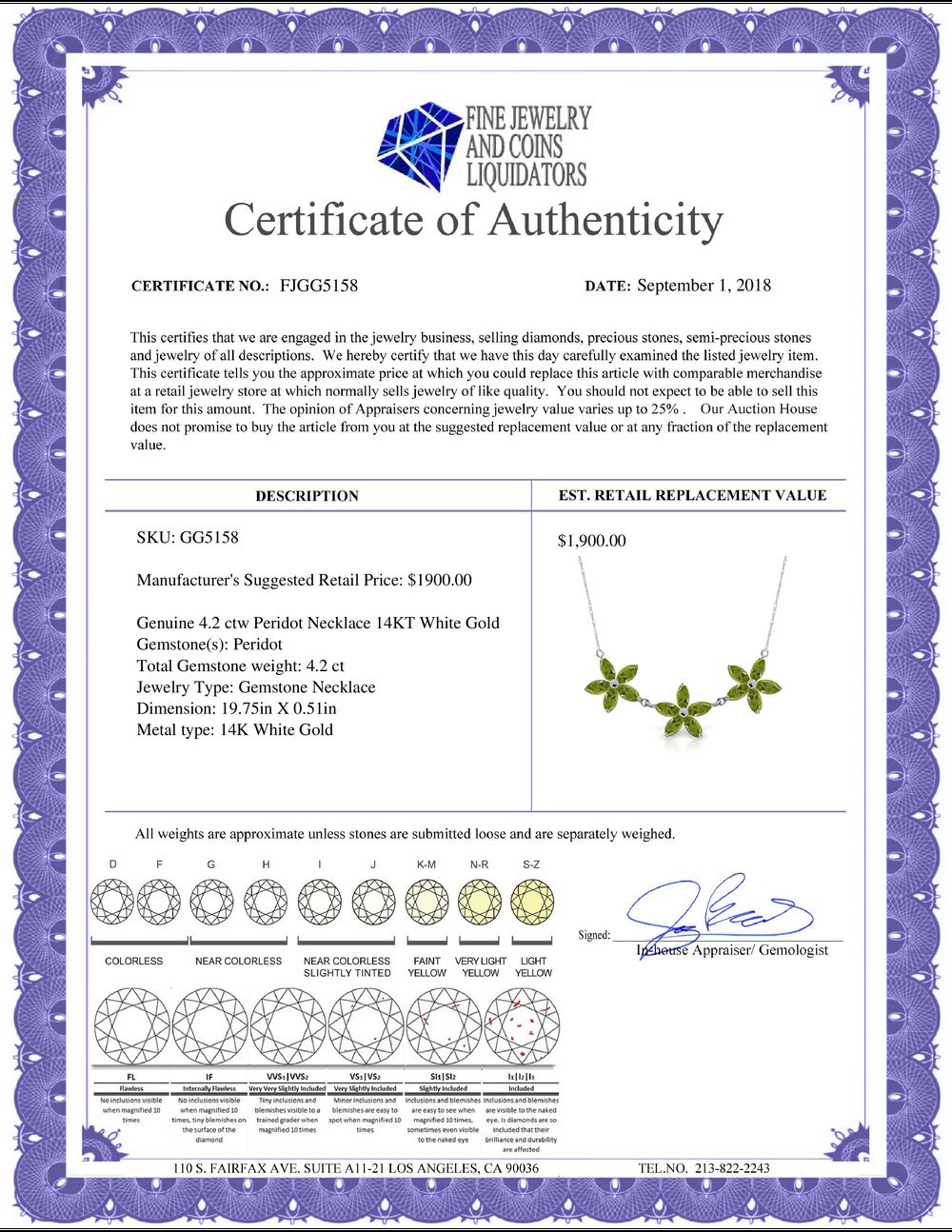 REF-60X7M - SKU: GG5158 ---- Genuine 4.2 ctw Peridot Necklace 14KT White Gold