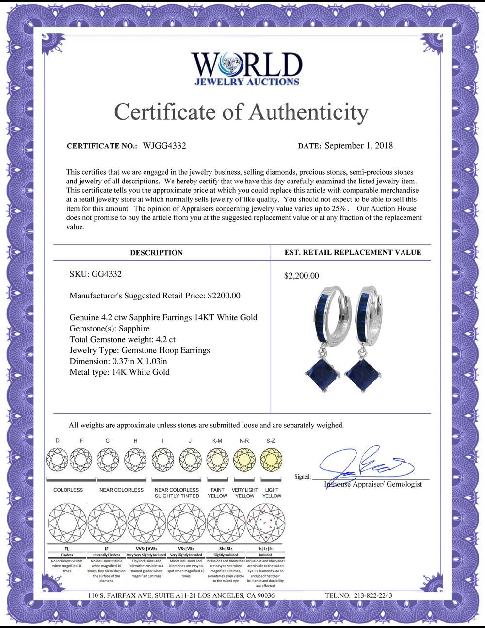 REF-70R3P - SKU: GG4332 ---- Genuine 4.2 ctw Sapphire Earrings 14KT White Gold