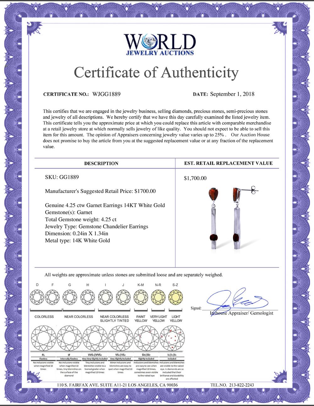 REF-54P6H - SKU: GG1889 ---- Genuine 4.25 ctw Garnet Earrings 14KT Rose Gold