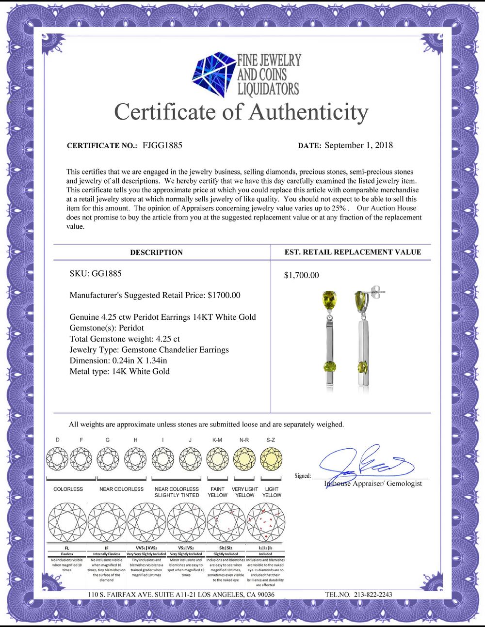 REF-54Z6N - SKU: GG1885 ---- Genuine 4.25 ctw Peridot Earrings 14KT Rose Gold