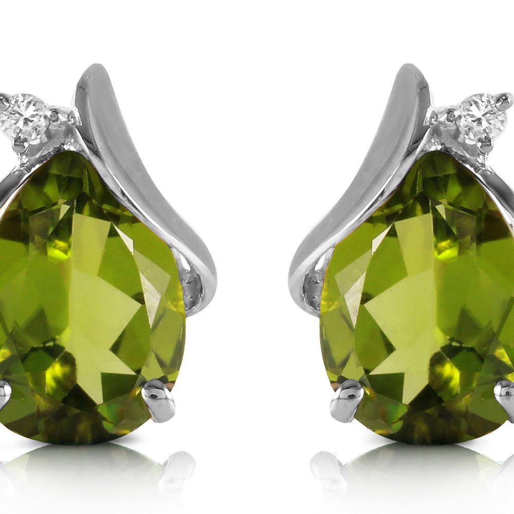 Genuine 14K White Gold 4.26 ctw Peridot & Diamond Earrings