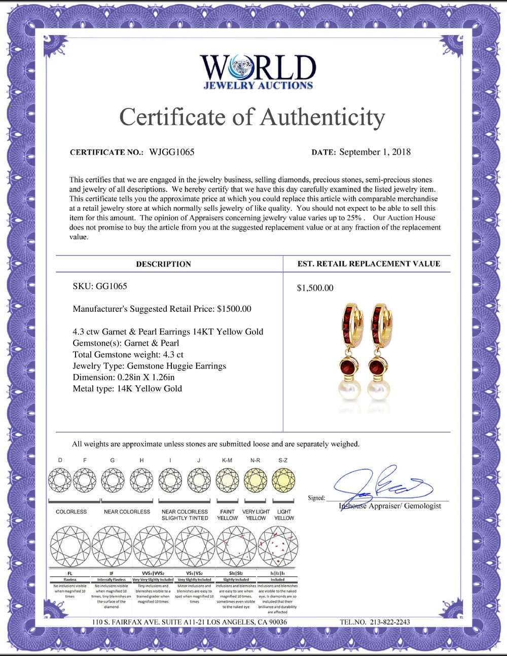 Genuine 14K Yellow Gold 4.3 ctw Garnet & Pearl Earrings