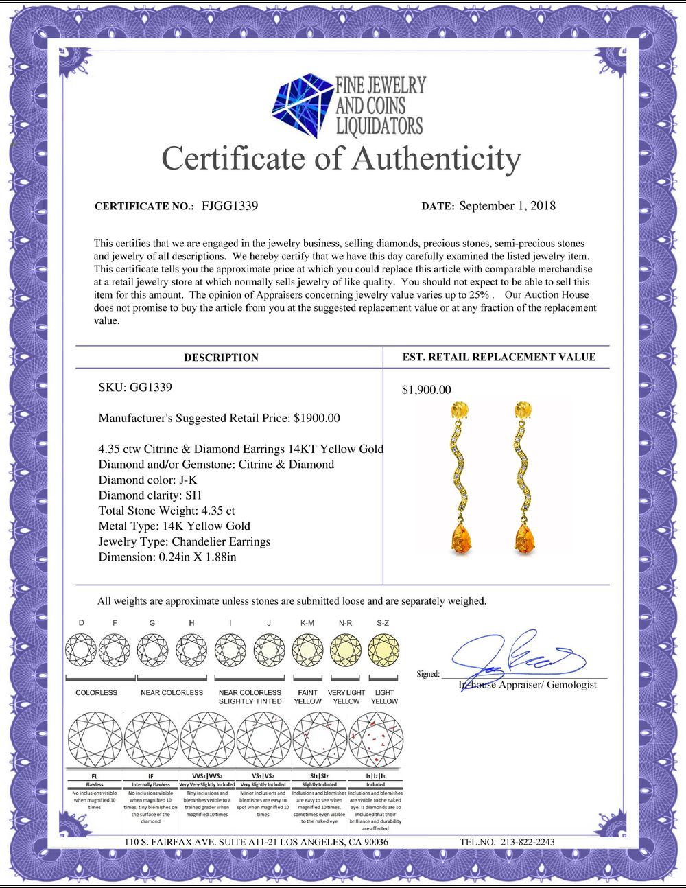 REF-62N3R - SKU: GG1339 ---- Genuine 4.35 ctw Citrine & Diamond Earrings 14KT Yellow Gold