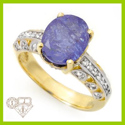 Gemstone: Tanzanite ; Diamond Count: 36 RD; Diamond Weight: 0.33H-J; Gemstone Clarity: AA - AAA : Color: Purple ; Gemstone Count & Color: 1 Oval Cut; Gemstone Weight: 4.02; Metal Purity: 10KT; Metal: 2 Tone ; Gold Weight (g) approx: 5.22; Ring Size 6.5; Dimension: Approx. 3/8" x 3/4"