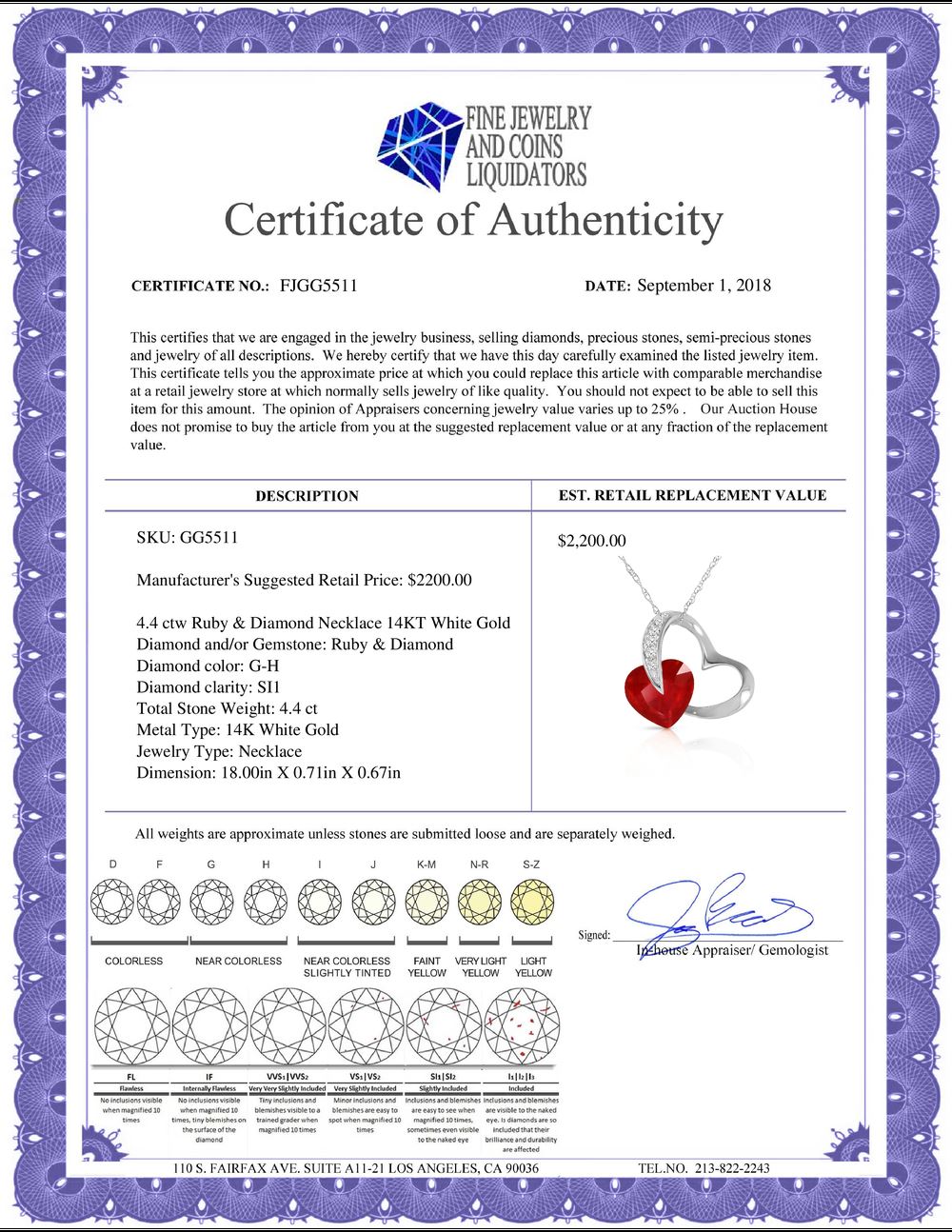 REF-71Y9F - SKU: GG5511 ---- Genuine 4.4 ctw Ruby & Diamond Necklace 14KT White Gold