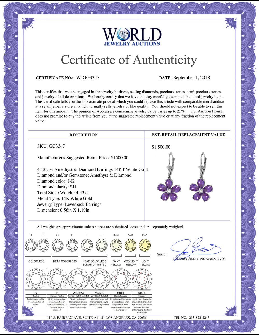 REF-49Y8F - SKU: GG3347 ---- Genuine 4.43 ctw Amethyst & Diamond Earrings 14KT White Gold