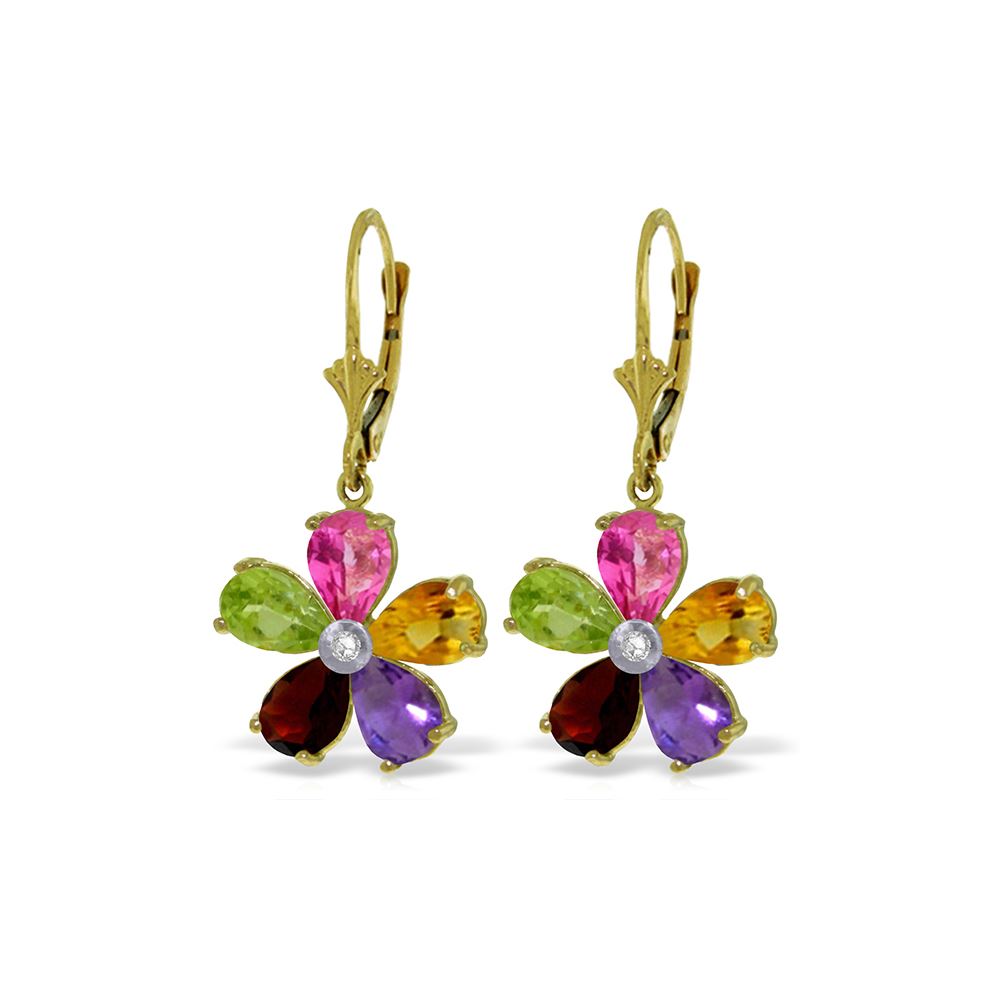 Genuine 14K Yellow Gold 4.43 ctw Pink Topaz, Citrine & Amethyst & Diamond Earrings