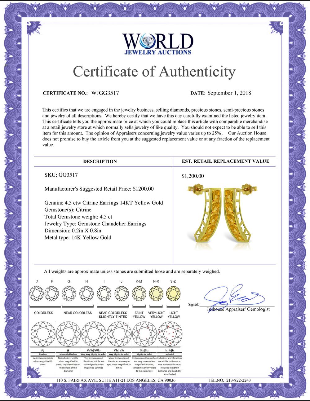 REF-38F5Z - SKU: GG3517 ---- Genuine 4.5 ctw Citrine Earrings 14KT Yellow Gold