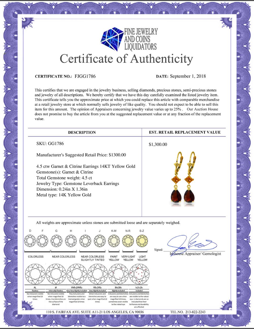 REF-41M4T - SKU: GG1786 ---- Genuine 4.5 ctw Garnet & Citrine Earrings 14KT Yellow Gold