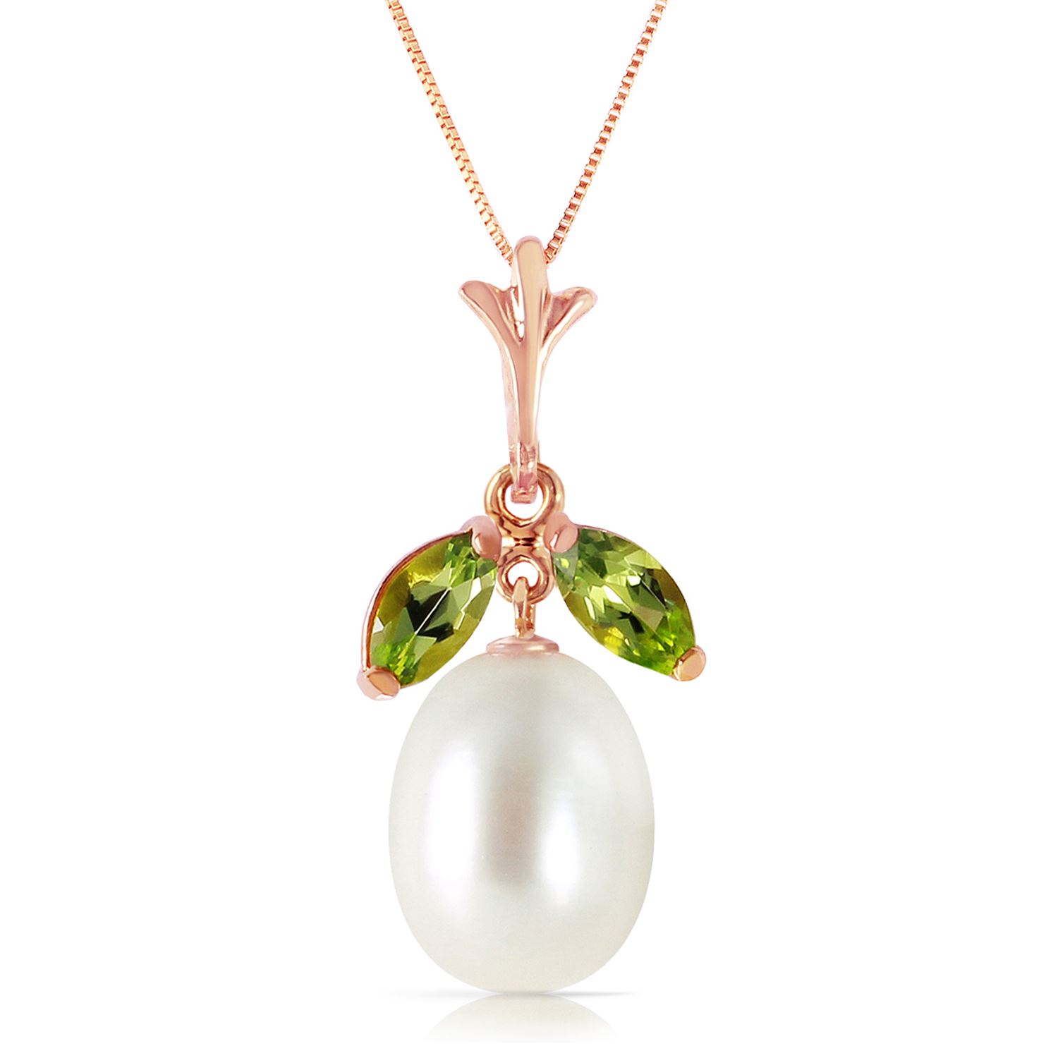 REF-24T3A ---- SKU:GG-3111 ---- Manufacturer's Suggested Retail Price: $800.00 ---- Genuine 14K Rose Gold 4.5 ctw Pearl & Peridot Necklace
