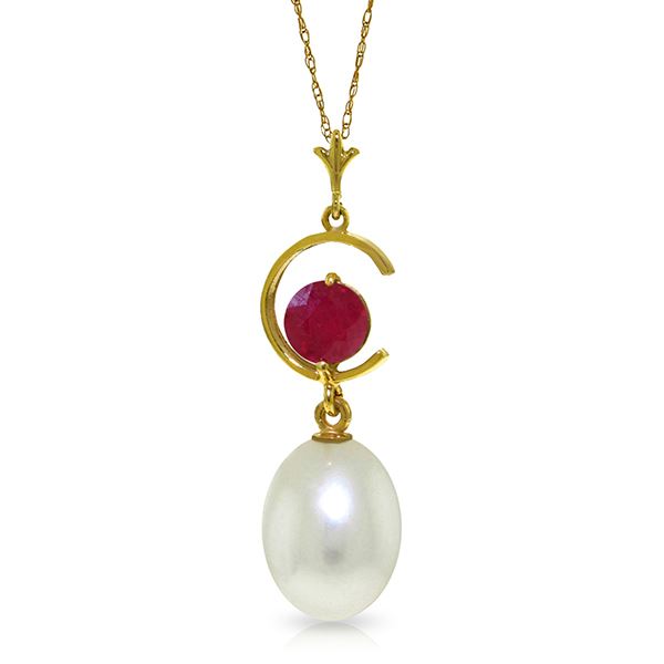 REF-22N2R ---- SKU:GG-4504 ---- Manufacturer's Suggested Retail Price: $700.00 ---- Genuine 14K Yellow Gold 4.5 ctw Pearl & Ruby Necklace