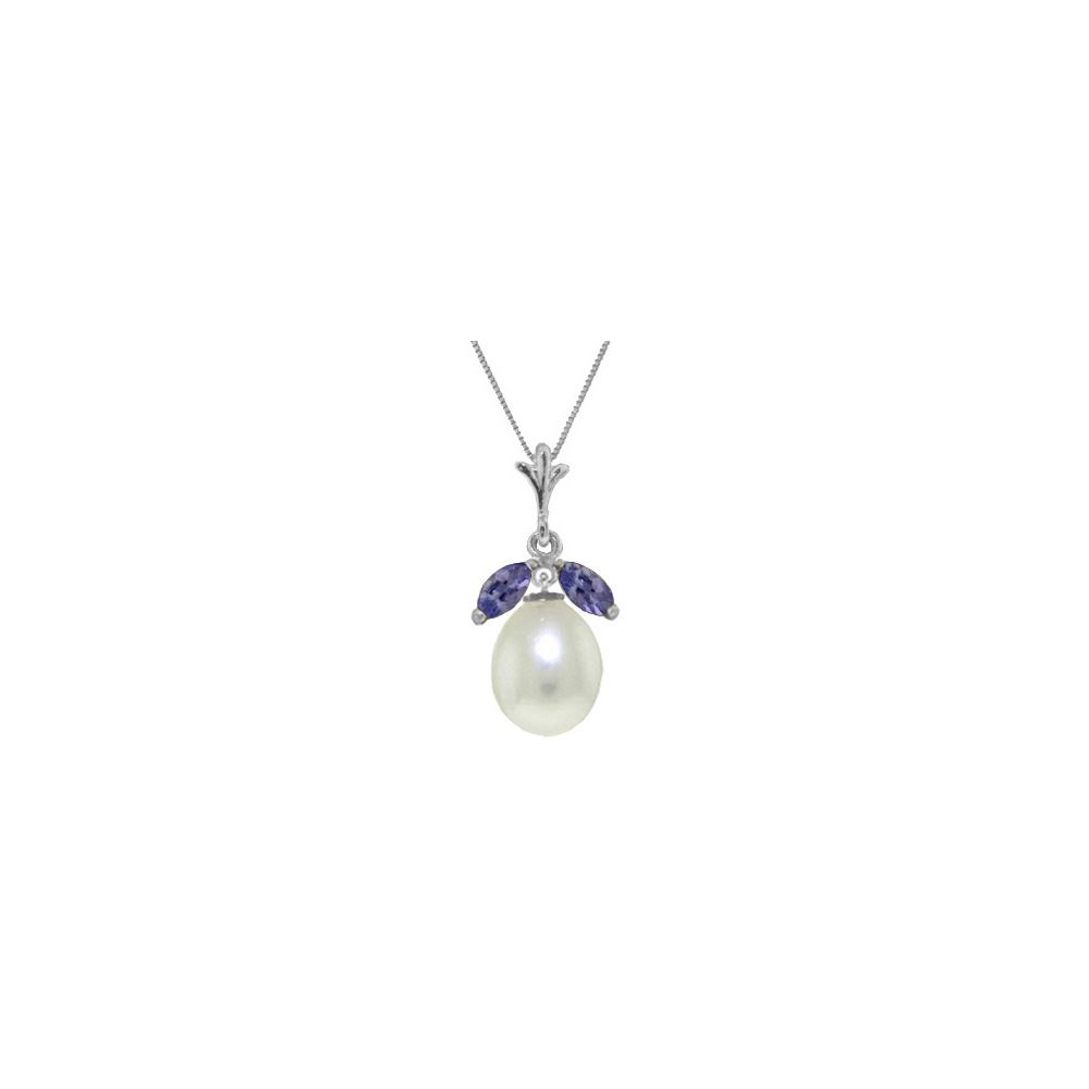 Genuine 14K White Gold 4.5 ctw Pearl & Tanzanite Necklace