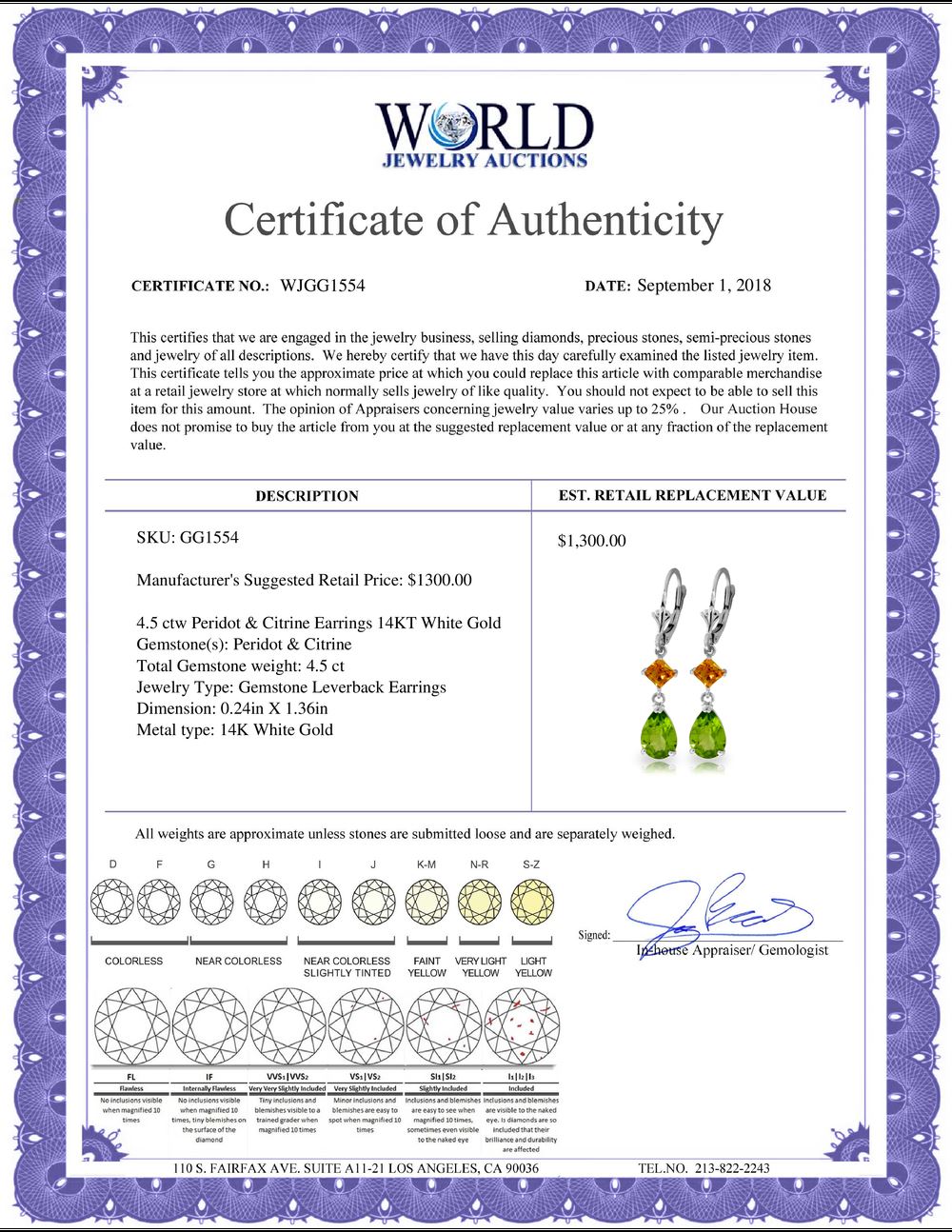 REF-41F4Z - SKU: GG1554 ---- Genuine 4.5 ctw Peridot & Citrine Earrings 14KT Rose Gold