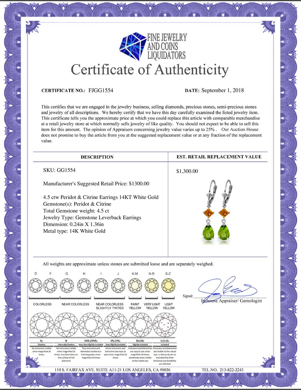 REF-41F4Z - SKU: GG1554 ---- Genuine 4.5 ctw Peridot & Citrine Earrings 14KT Rose Gold