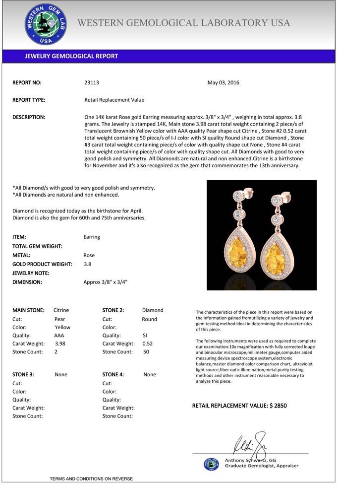 total approx. 3.8 grams. The Jewelry is stamped 14K, Main stone 3.98 carat total weight containing 2 piece/s of Translucent Brownish Yellow color with