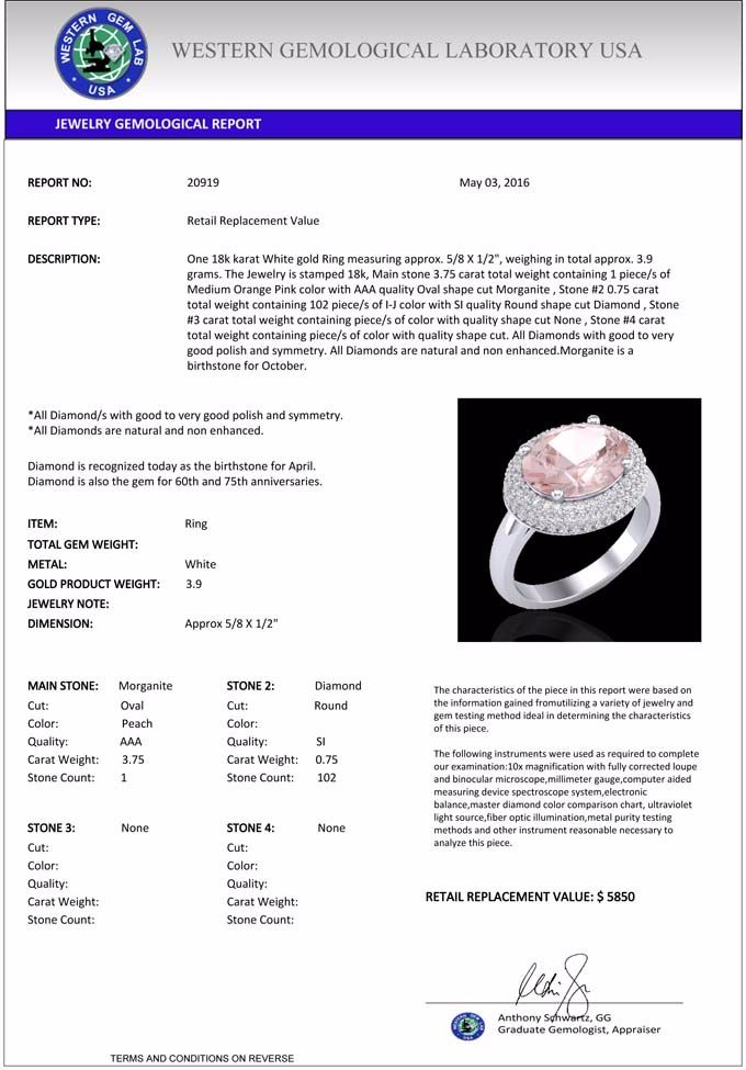 total approx. 3.9 grams. The Jewelry is stamped 18k, Main stone 3.75 carat total weight containing 1 piece/s of Medium Orange Pink color with