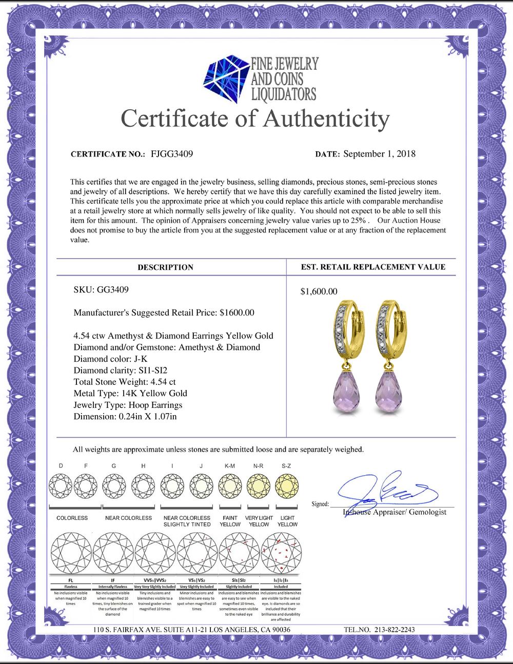 REF-52R2P - SKU: GG3409 ---- Genuine 4.54 ctw Amethyst & Diamond Earrings 14KT Yellow Gold