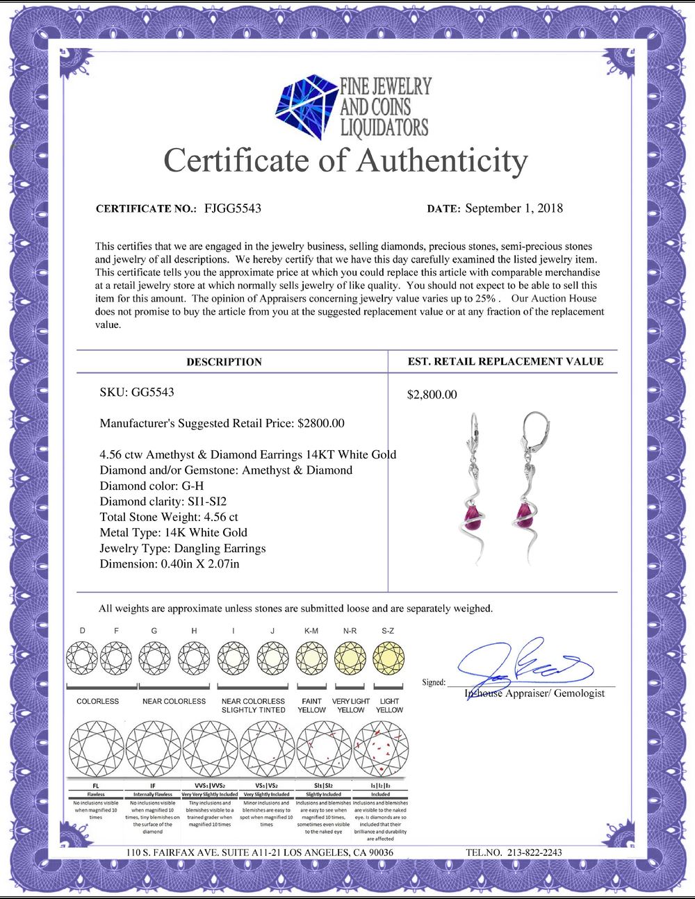REF-91A4K - SKU: GG5543 ---- Genuine 4.56 ctw Amethyst & Diamond Earrings 14KT Rose Gold