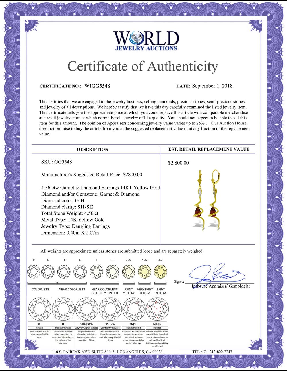 REF-91F4Z - SKU: GG5548 ---- Genuine 4.56 ctw Garnet & Diamond Earrings 14KT Rose Gold