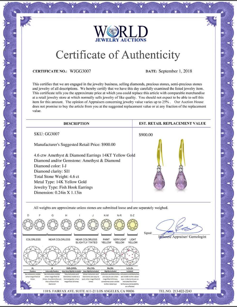 Genuine 14K Yellow Gold 4.6 ctw Amethyst & Diamond Earrings