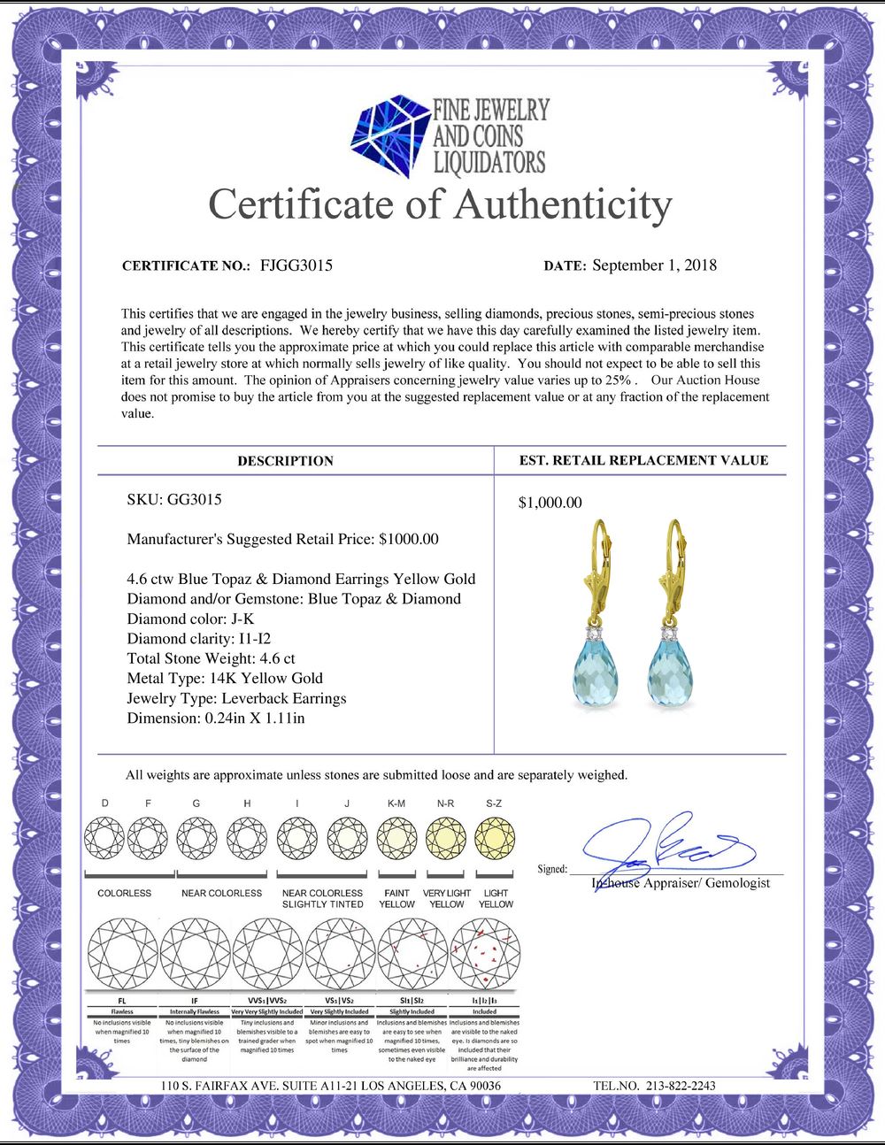 All Gia and EGL Diamonds are subject to availability due to consignors’ terms with us.