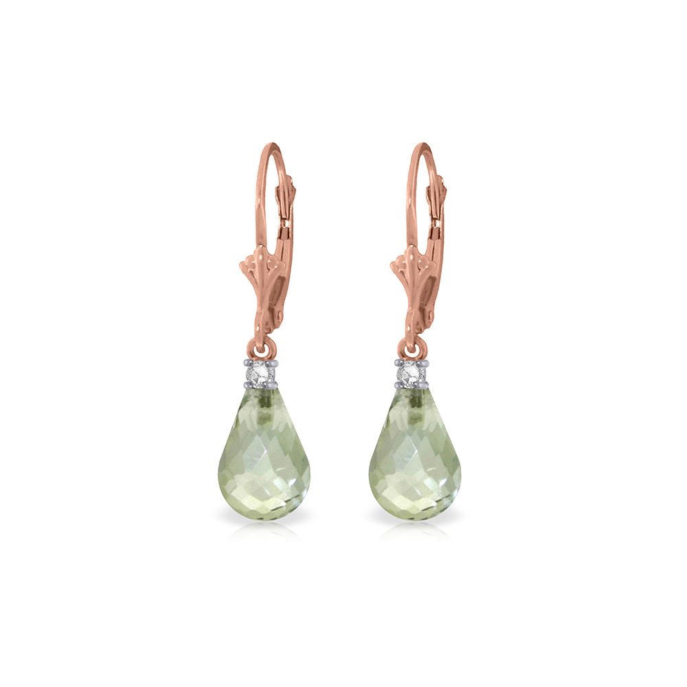 Genuine 14K Rose Gold 4.6 ctw Green Amethyst & Diamond Earrings