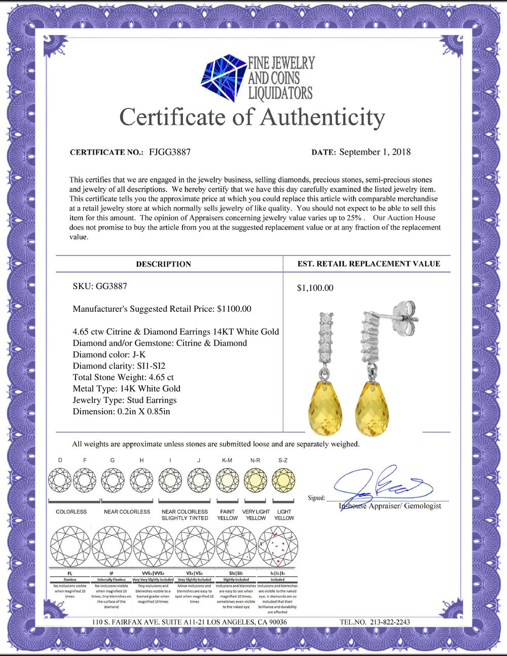 All Gia and EGL Diamonds are subject to availability due to consignors’ terms with us.