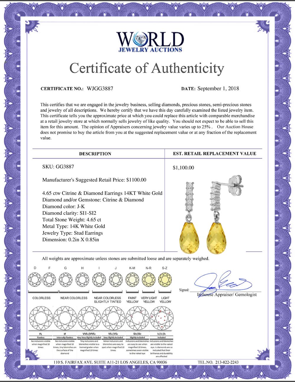 REF-36P2H - SKU: GG3887 ---- Genuine 4.65 ctw Citrine & Diamond Earrings 14KT Rose Gold