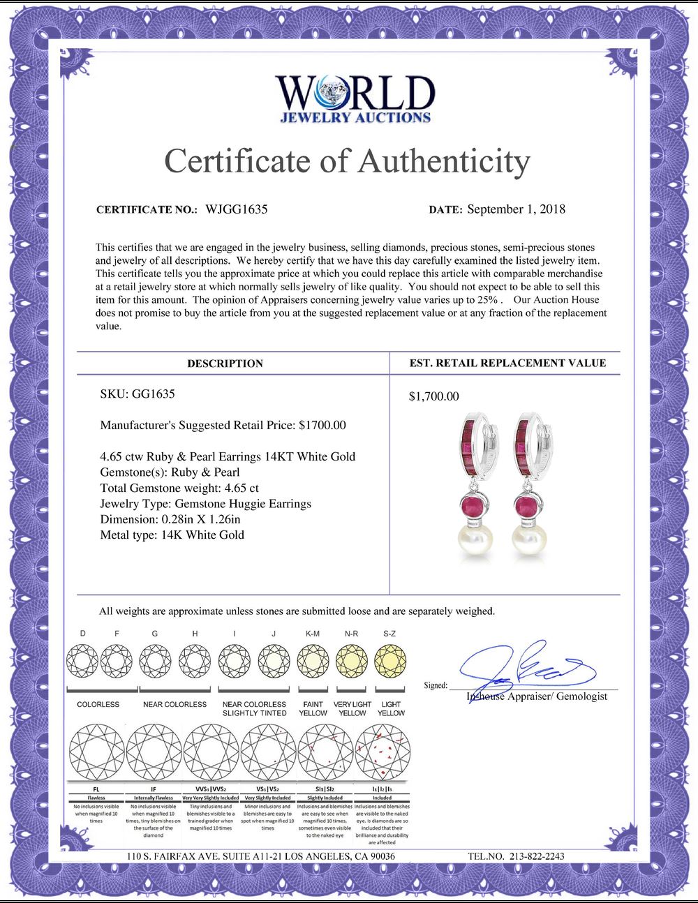 REF-54M6T - SKU: GG1635 ---- Genuine 4.65 ctw Ruby & Pearl Earrings 14KT Rose Gold